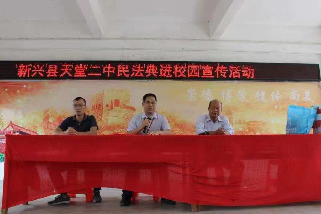 近日,广东睿讯律师事务所梁荣军律师受邀到天堂镇第二中学开展以“法典护成长,助力少年强”为主题的普法讲座。
