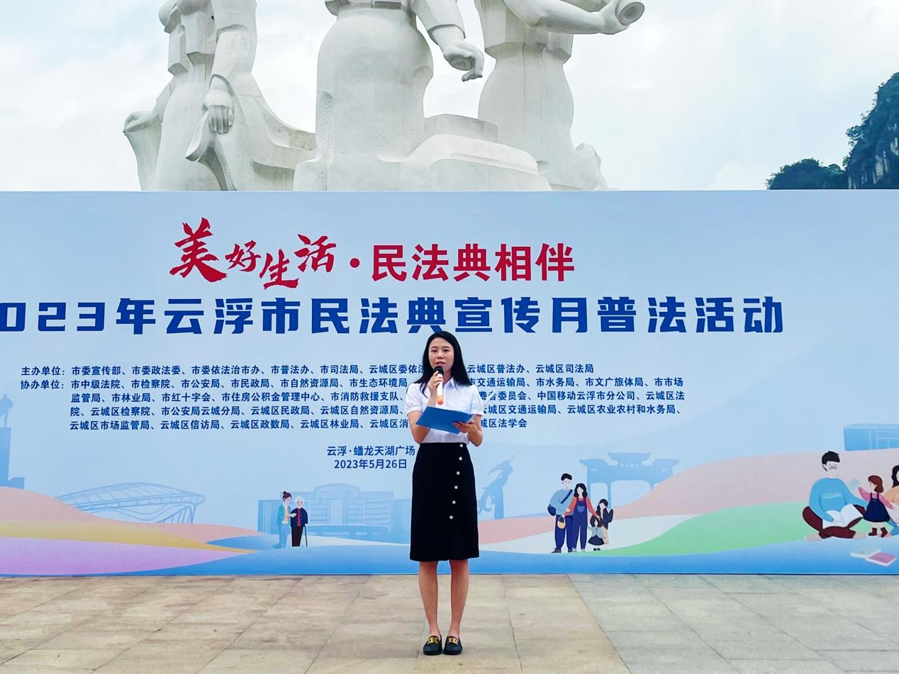 5月28日,广东慧格律师事务所赵飞燕律师受邀到云浮市蟠龙天湖广场参加市委宣传部、市委政法委、市委依法治市办、市司法局等多个单位联合举办的“美好生活·民法典相伴”主题普法宣传活动。