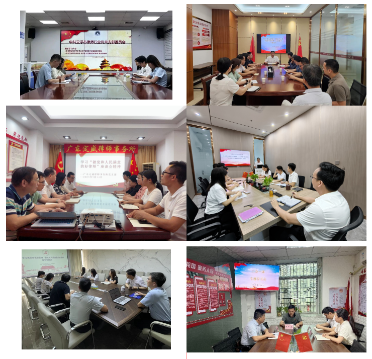 市律师行业各律师事务所党支部、联合党支部也积极组织支部全体党员传达学习司法部律师工作座谈会精神,并以谈体会、写心得等方式,深化对司法部党组“做党和人民满意的好律师”座谈会精神的理解把握,进一步把学习成果转化为推动云浮律师行业高质量发展的具体举措。